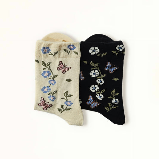 Butterfly Flower Pattern Women's Cotton Socks [2 Colours available]