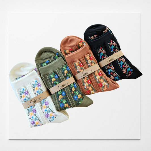 Flower Pattern Women’s Cotton Socks [4 Colours available]
